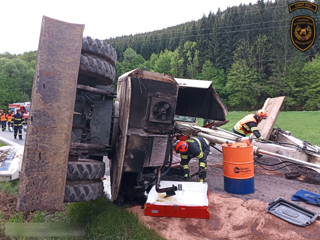 Na místo okamžitě vyjeli hasiči ze stanice Vsetín. Pádem bagru došlo k úniku provozních kapalin a poškození komunikace. Hasiči provedli protipožární opatření.