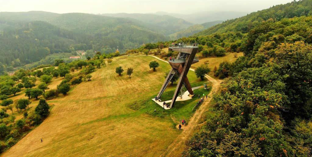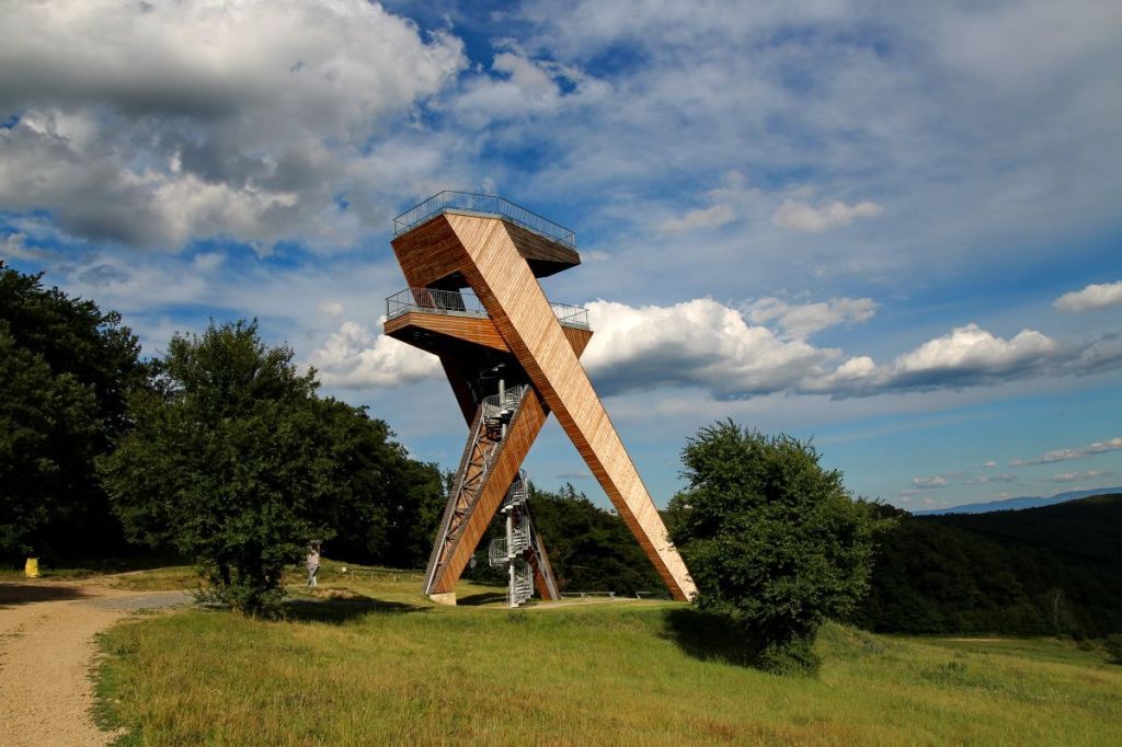 Výstup na její vyhlídkovou plošinu je odměněn úchvatnými panoramatickými výhledy na malebné Slovácko, zalesněné hřebeny Chřibů, zvlněné Vizovické vrchy a za jasného počasí se v dálce rýsují i Pálava a majestátní Bílé Karpaty.