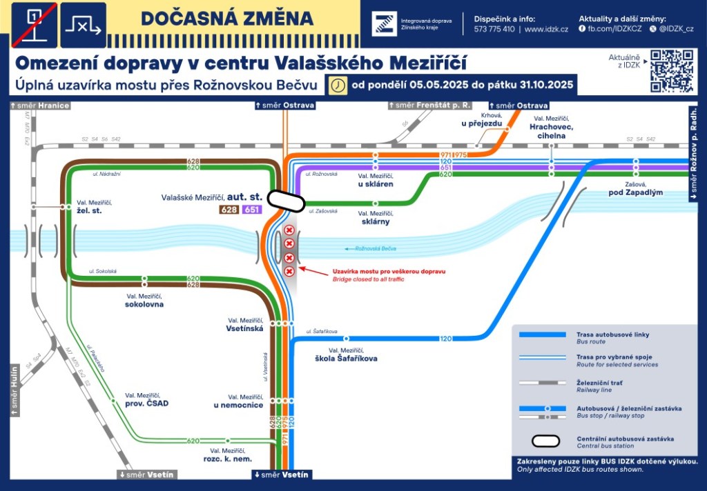 Největší dopad bude mít uzavírka pochopitelně na autobusové linky Integrované dopravy Zlínského kraje (IDZK). Dojde k úpravám tras a zavedení výlukových jízdních řádů na několika klíčových linkách.