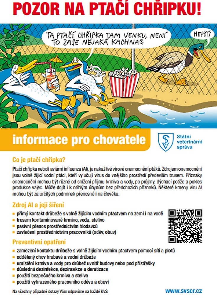 Doporučení chovatelům a veřejnosti: Přihlásit každý chov v Centrálním registru, okamžitě hlásit výrazné úhyny krajské veterinární správě, zajistit izolaci drůbeže od volně žijících ptáků, používat dezinfekční rohože a ochranné oděvy a důkladně tepelně upravovat maso na minimálně 70 °C.