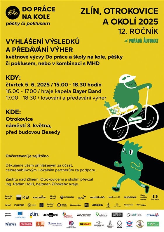 OTROKOVICE | Slavnostní vyhlášení výsledků květnové výzvy „Do práce na kole“ se letos uskuteční v Otrokovicích na náměstí 3. května, a to již 5. června 2025.