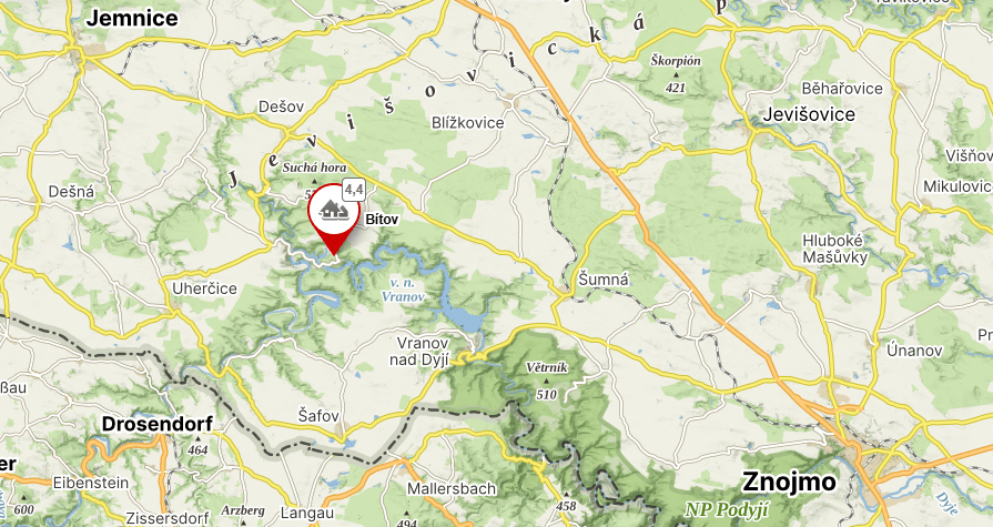 Vyhledávaná lokalita, ležící v malebném údolí Dyje, nabízí spojení historie, přírodních krás a aktivního odpočinku.