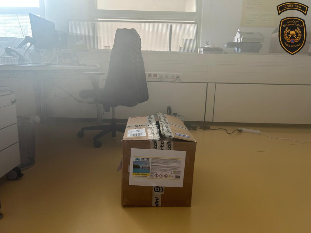 Po příjezdu hasičů byli všichni zaměstnanci již mimo zakouřený prostor budovy. Hasiči provedli průzkum místa požáru, přičemž zjistili, že se v balíku nachází nějaká chemická látka. Tento objev si vyžádal další postup.