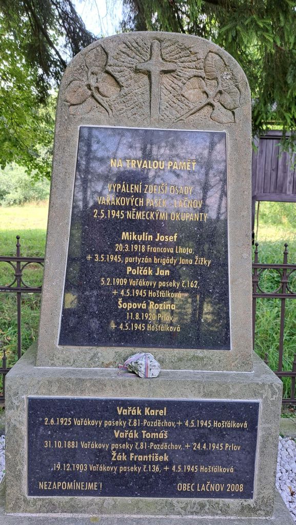 Vařákovy Paseky, osada patřící pod obec Lačnov, jsou místem s hlubokou a tragickou historií. Během druhé světové války se staly významným centrem protinacistického odboje a útočištěm partyzánů. Dne 2. května 1945, jen několik dní před koncem války, byly Vařákovy Paseky brutálně vypáleny nacisty jako akt pomsty za podporu partyzánů. Tři desítky domů lehly popelem a mnoho obyvatel bylo umučeno.