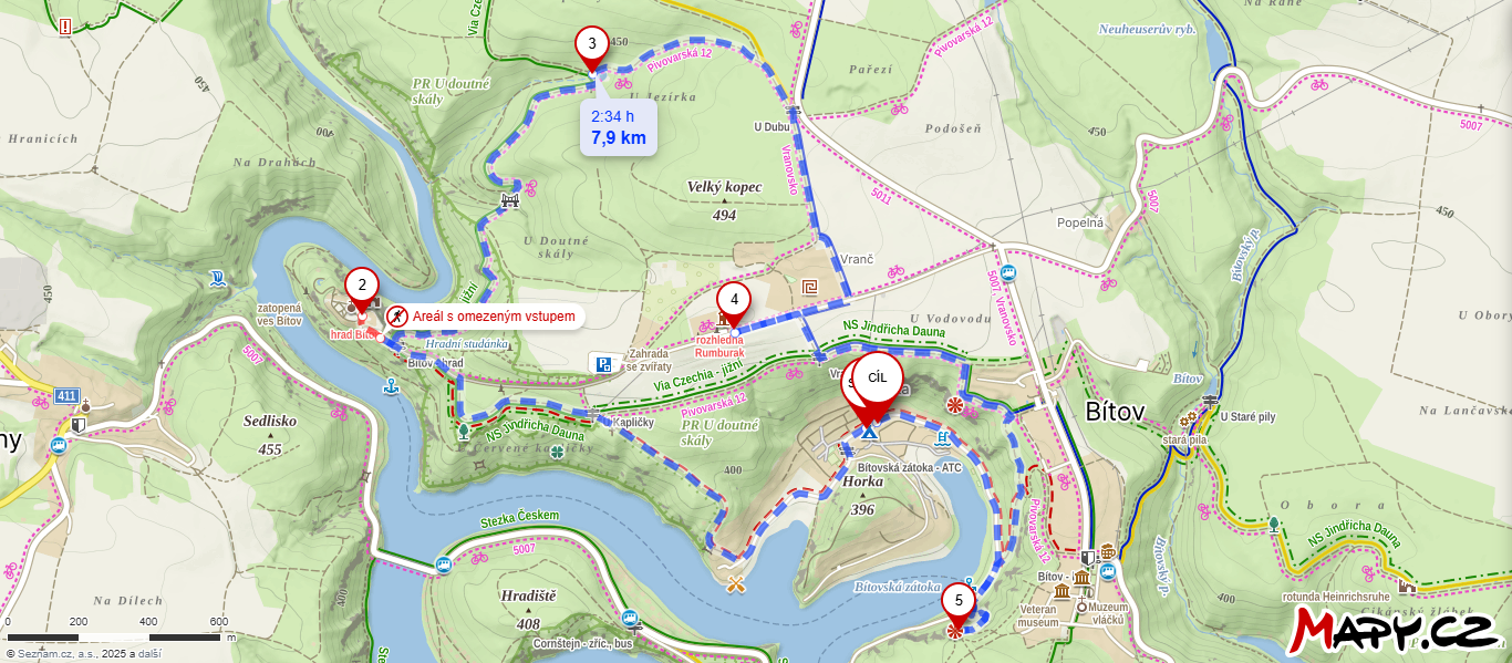 Doprava: Vyrážíme vlakem ze Starého Města v 6:37 hodin, přestoupíme v Břeclavi. Ve Znojmě změníme dopravní prostředek za autobus. Ten nás zaveze do Lesné, kde přeskočíme na spoj do Bítova. Spoje na sebe téměř okamžitě navazují a čekají. V Bítově budeme kolem desáté. Vrátíme se v neděli v podvečer, stejným způsobem v opačném gardu.