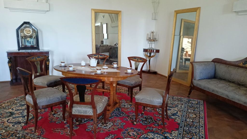 Interiéry zámku, zejména sala terrena v přízemí a sály v prvním patře, jsou bohatě zdobeny raně barokními nástropními freskami a štukovou výzdobou, což svědčí o vysoké umělecké úrovni tehdejší doby.
