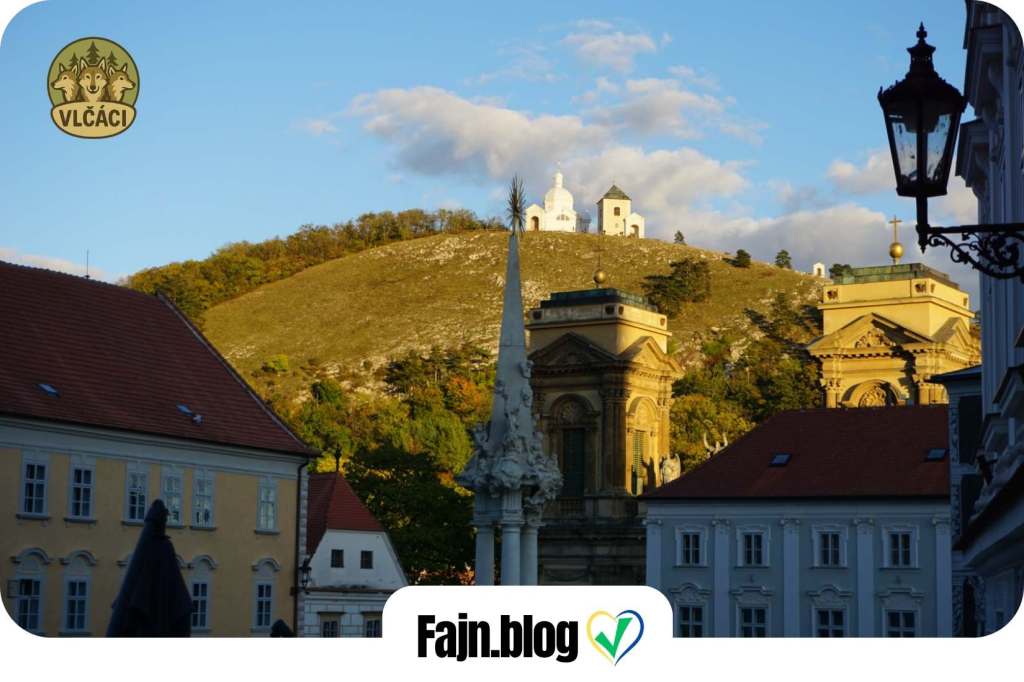 Za pár desítek minut se pak „vyloupnete“ z nedalekého lesa přímo v Mikulově, poblíž místnímu amfiteátru. Součástí našeho přechodu byl (a bude) vždy Svatý kopeček, a jiné to nebylo ani letos. Místo, které každoročně navštíví desetitisíce turistů, je ikonou města a pravidelným cílem nejen VLČÁKŮ. Zdravit zde může klidně Guten tag, jelikož naši jižní sousedé zde bývají hojně zastoupeni. Po „povinném“ focení a načerpání vesmírné energie, čekala nás už jen cesta dolů, za krásami historického náměstí a zámku.
