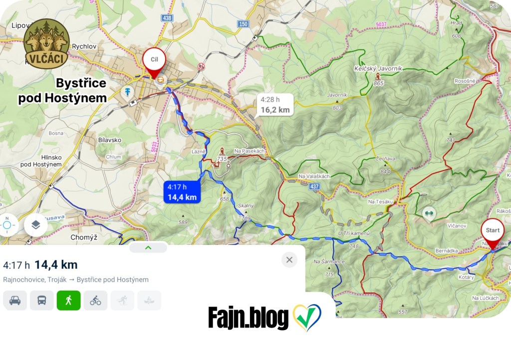 - Trasa: Troják – Tesák – Svatý Hostýn – Bystřice pod Hostýnem