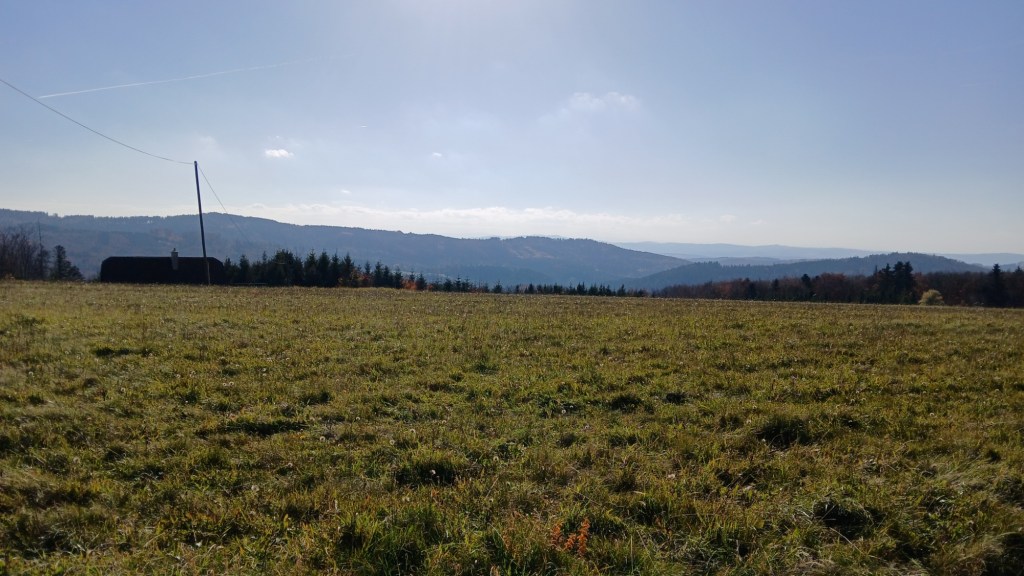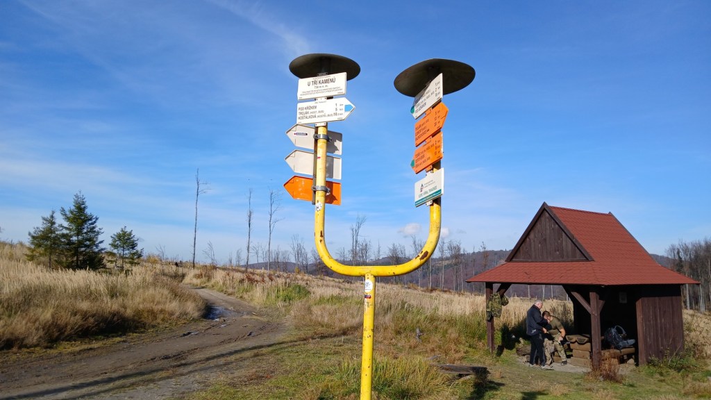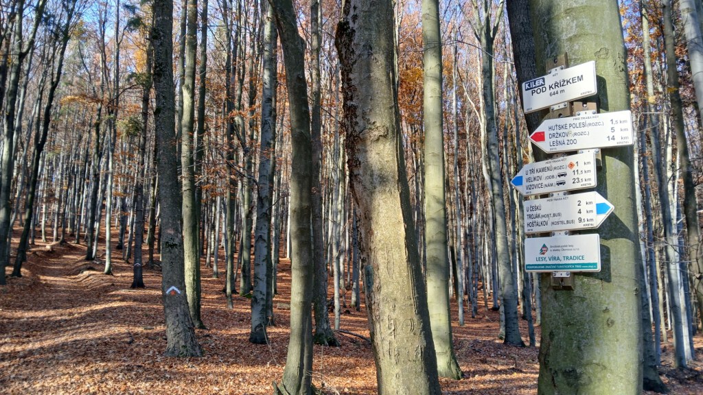 Výlet začal v sedle Troják (618 m) na křižovatce turistických tras a cyklostezek. Z krátkého úvodu mezi chalupami jsme se rychle ponořili do lesního ticha, kde zmizely zvuky silnice. Stezka se zvedala mírným, ale vytrvalým sklonem, pod nohama se střídaly kořeny a jemná šotolina. Občas se mezi stromy ukázal nenápadný průhled k Vizovickým vrchům a dál do krajiny. 🌲