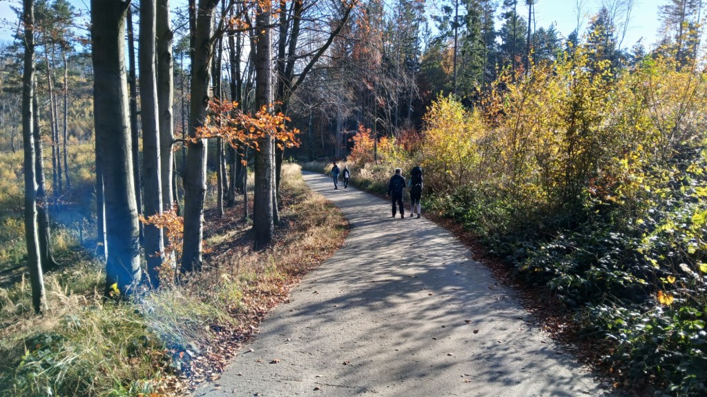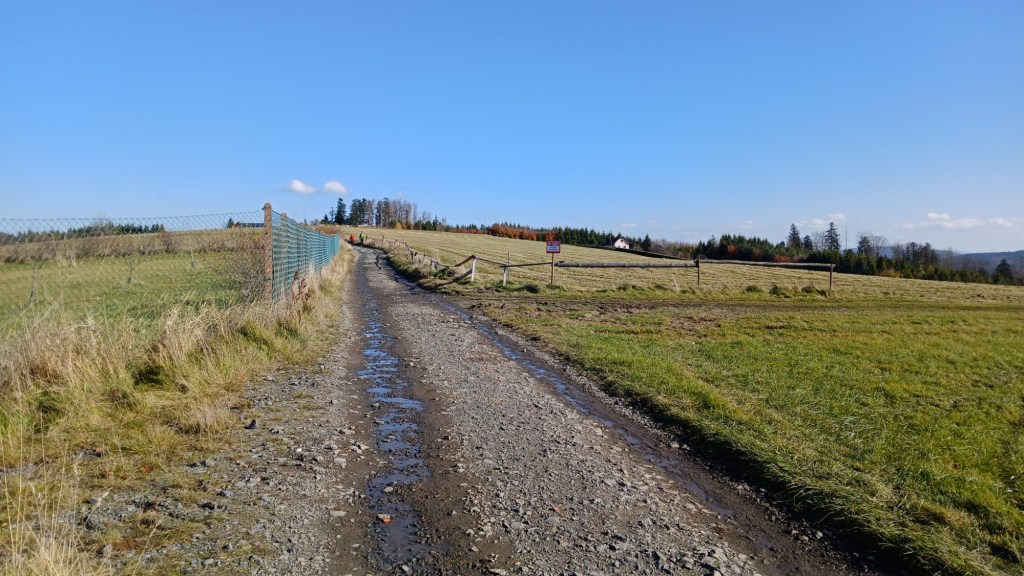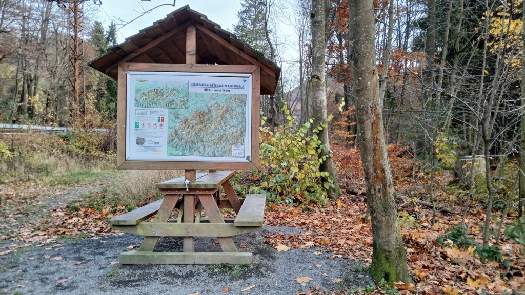 Z Hostýna jsme klesali značenou cestou, kde se střídaly kořeny, šotolina a na konci krátký asfaltový pruh. V dolních partiích bylo vlhko, ale podklad držel, takže se šlo jistě. Poslední metry do Chvalčova už patřily tichu a malým zvukům vesnice. Výlet skončil na zastávce U Revíru, kde les přirozeně ustoupil civilizaci a den se uzavřel. 🌳