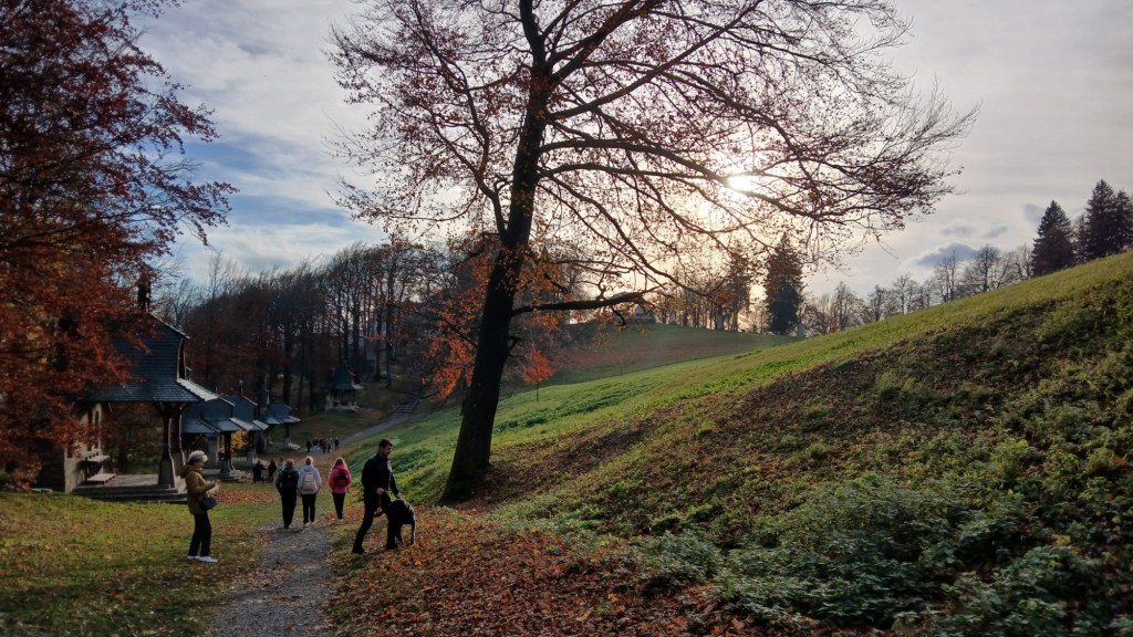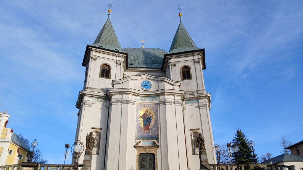 Výstup ke Svatému Hostýnu (735 m) už měl poutní rytmus: tiché kroky a tempo podle dechu. U baziliky Nanebevzetí Panny Marie se rozsvítily drobné zvuky mědi a kroky návštěvníků. Jurkovičova křížová cesta propojila kámen a dřevo do motivu, který se sem vrací roky. Od rozhledny to táhlo do dálky: Haná, okraje Beskyd, Bystřice pod kopcem. ✨