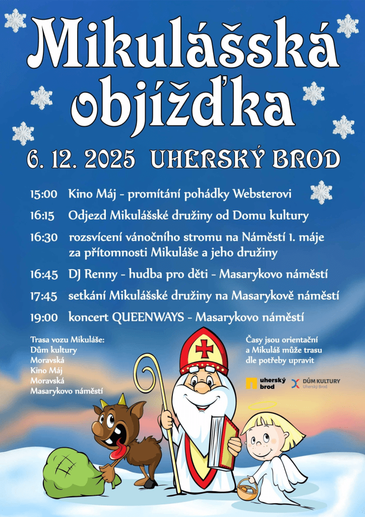 FAJN POZVÁNKY | Tradiční Mikulášská objížďka náleží v Uherském Brodě k významným a nejkrásnějším adventním událostem. Tato akce, která se koná pravidelně každý rok, symbolizuje začátek svátečního období a navazuje na bohatou tradici v regionu Slovácka. Během objížďky projíždí městem Mikuláš se svou družinou, tedy anděly a čerty, v historickém kočáře.