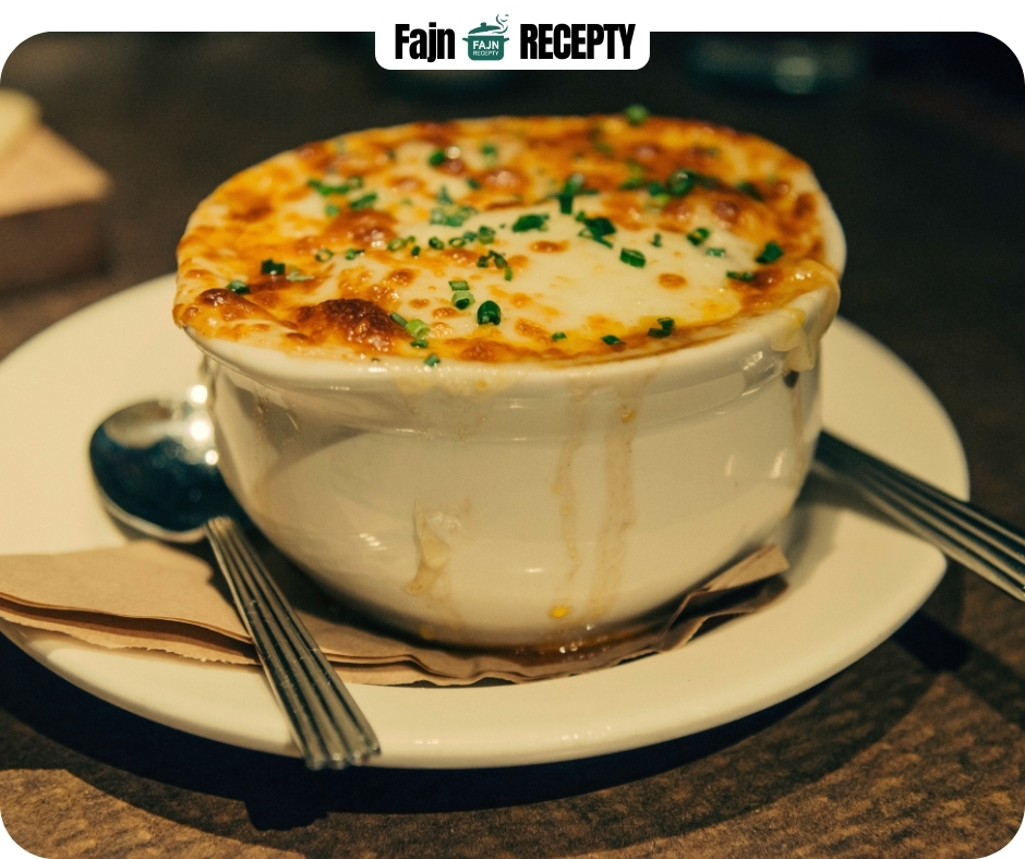 Postup: Cibuli v hrnci na směsi másla a oleje restujte na mírném plameni za častého míchání trpělivě asi 40 minut, dokud nezíská tmavě hnědou barvu, což je pro chuť naprosto zásadní. Poté základ zalijte vínem, nechte odpařit alkohol, přilijte horký vývar a pod pokličkou vařte dalších 20 minut, aby se chutě propojily. Servírujte v miskách s plátkem opečené bagety, kterou bohatě posypte nastrouhaným sýrem a nechte krátce zapéct pod grilem dozlatova.