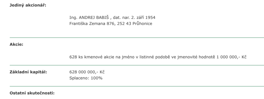 Pro úřady, jako je Ministerstvo zemědělství, je směrodatný pouze a jenom veřejný zápis v obchodním rejstříku. Úředník nemůže přihlížet k mediálním prohlášením politika, ale musí se řídit tím, co vidí v kolonce „Akcionáři“.
