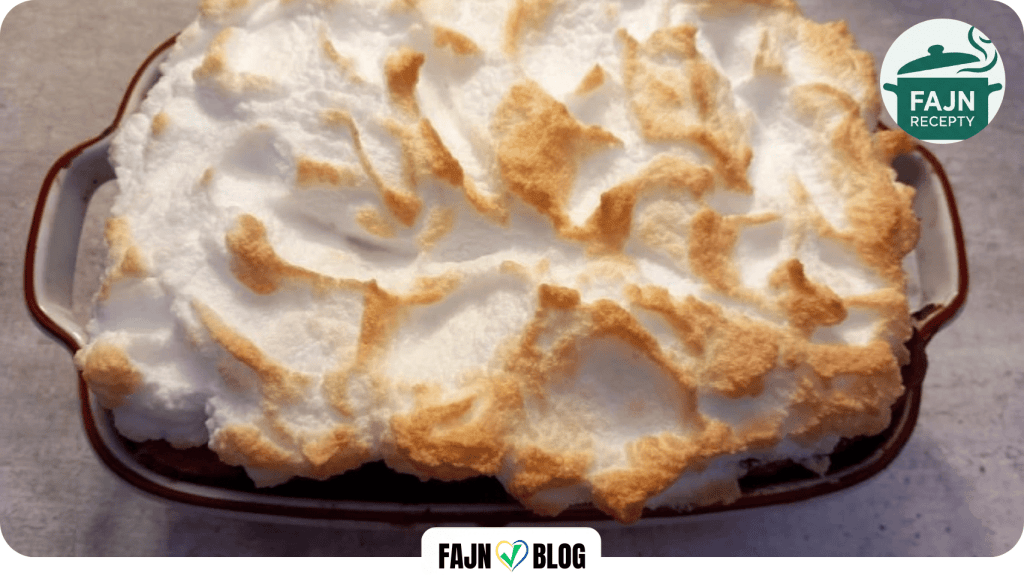 Vše zakryjeme poslední vrstvou pečiva a poklademe plátky čerstvého másla, aby byl povrch po upečení krásně křupavý a zlatavý. Pečeme v troubě vyhřáté na sto osmdesát stupňů Celsia asi třicet minut. Z bílků a cukru můžeme vyšlehat tuhý sníh, který naneseme na žemlovku ke konci pečení a necháme krátce zapéct do zlatova.