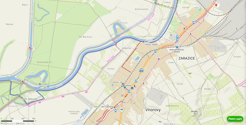 Milovníci cyklistiky využívající frekventovanou stezku podél vody se musí připravit na dočasnou změnu trasy v úseku u Vnorov. Oficiální objížďka vede náhradním směrem po hrázi řeky Moravy a spojuje obec s částí Zarazice.