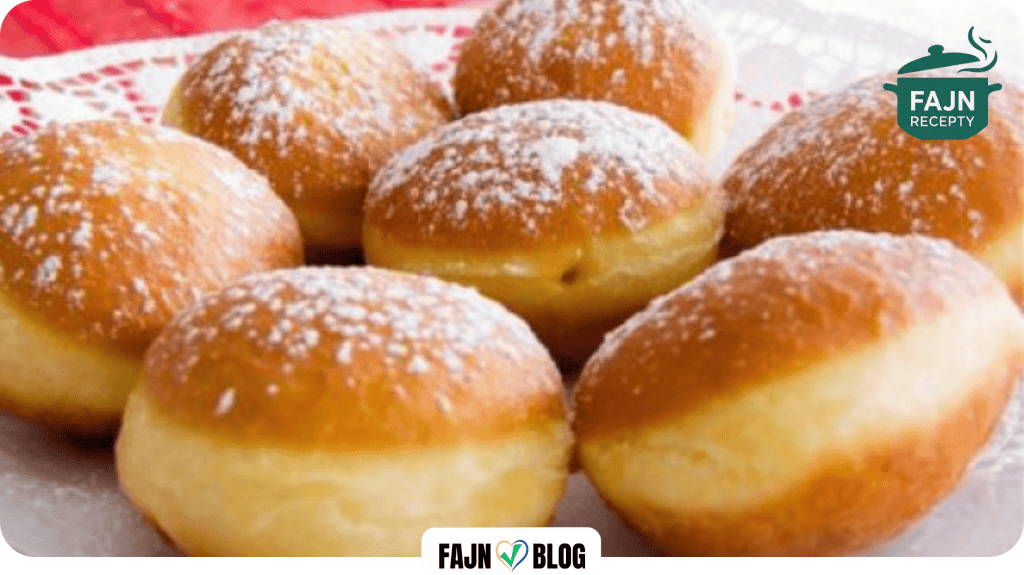 Z vykynutého těsta vyválíme plát, vykrájíme kolečka a necháme je ještě chvíli na válu odpočinout. Koblihy smažíme ve vysoké vrstvě rozpáleného oleje z obou stran dozlatova a po vychladnutí je plníme stříkačkou oblíbenou zavařeninou. Před podáváním je bohatě pocukrujeme moučkovým cukrem smíchaným s vanilkou.