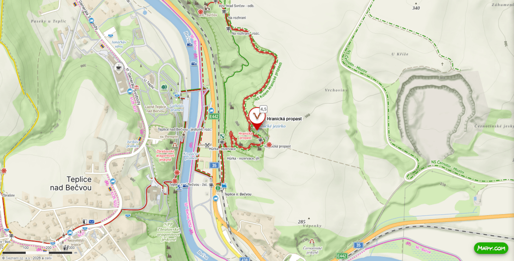 V těsné blízkosti se nacházejí také veřejnosti přístupné Zbrašovské aragonitové jeskyně, které jsou nejteplejšími jeskyněmi v celém Česku. Celý tento krasový systém je vzájemně propojen složitou sítí kanálů, které vědci stále mapují.