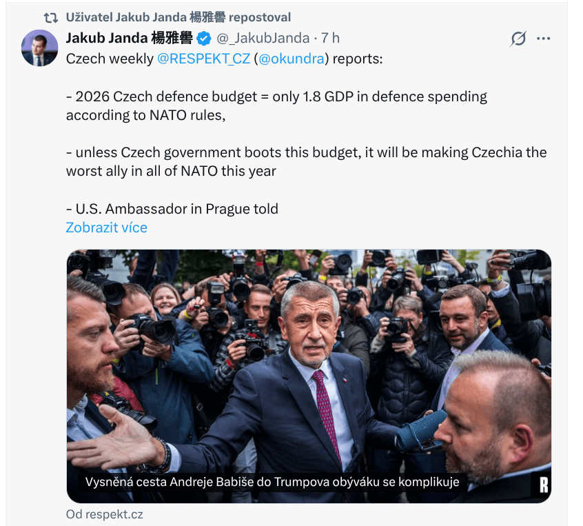 Janda upozorňuje, že současná vláda riskuje ztrátu nadstandardní podpory ze strany zámořského partnera. Pokud Česko nebude plnit své závazky, nemůže počítat s prioritním postavením. Varování před izolací v rámci NATO je podle něj zcela na místě.