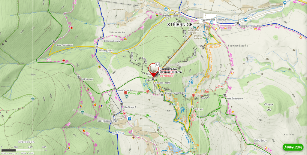 V měsíci leden 2026 je rozhledna obklopena lyžařským ruchem, ale přístup je umožněn i pěším turistům a běžkařům pohybujícím se mimo sjezdovky.
