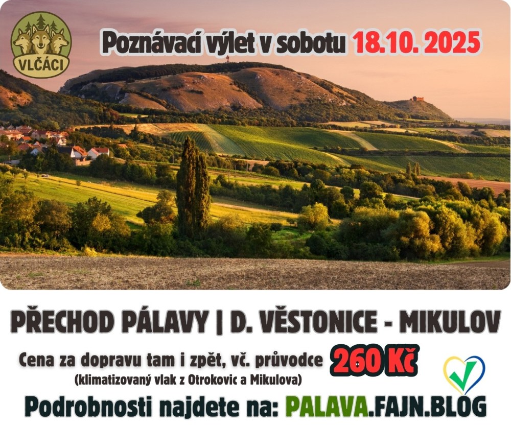 Přihlásit na výlet se můžete na mailové adrese: klubvlcaci@gmail.com, anebo vyplňte níže uvedený formulář nejpozději do 15. října. V předmětu zprávy napište PÁLAVA a v mailu uveďte své jméno, počet účástníků a jejich věk. Poplatek za výlet se hradí před odjezdem v Otrokovicích.