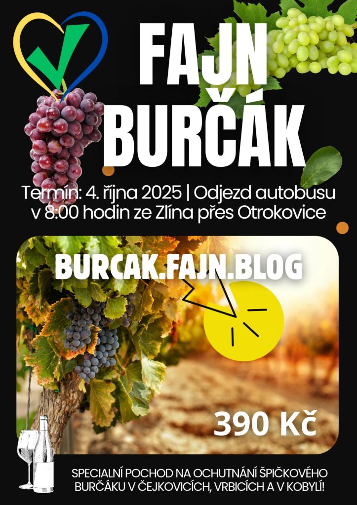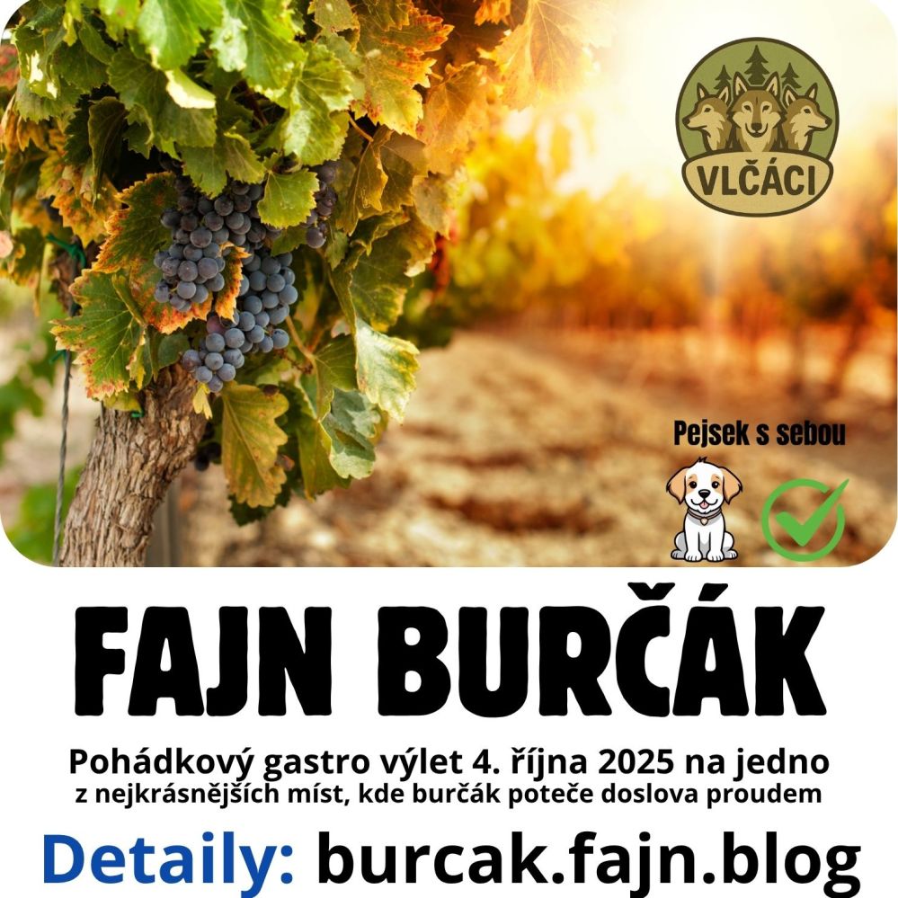 Speciální, soukromá akce s názvem FAJN BURČÁK (dříve Pochod za burčákem) je poznávacím gastro výletem, který pořádá Klub VLČÁCI v rámci spolupráce s www.fajn.blog