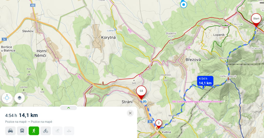 Mikulčin vrch – Velký Lopeník – Květná – Strání. Na trasu se vydáme z Mikulčina vrchu (po přicestování stejným autobusovým spojem jako v listopadu) přes sedlo, ale tentokrát nebude rozhledna na Velkém Lopeníku naším cílem, nýbrž sice hlavní, ale jen průběžnou zastávkou. Po „povinném“ odpočinku a občerstvení vydáme se po zelené stezce směr malebné slovácké obce Květná a Strání.